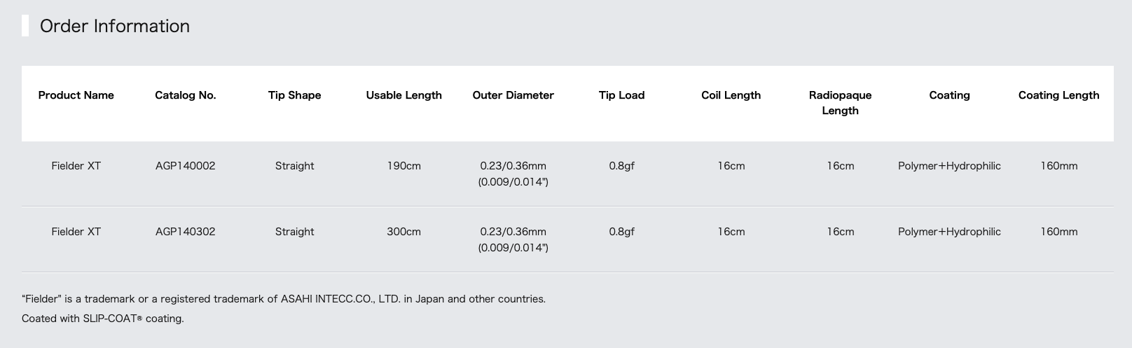 ASAHI wires are designed as One-piece core wires, transmitting the guide wire torque from one end to the other without loss and with a Joint-less spring coil, ensuring a smooth transition from platinum to stainless steel spring coil.