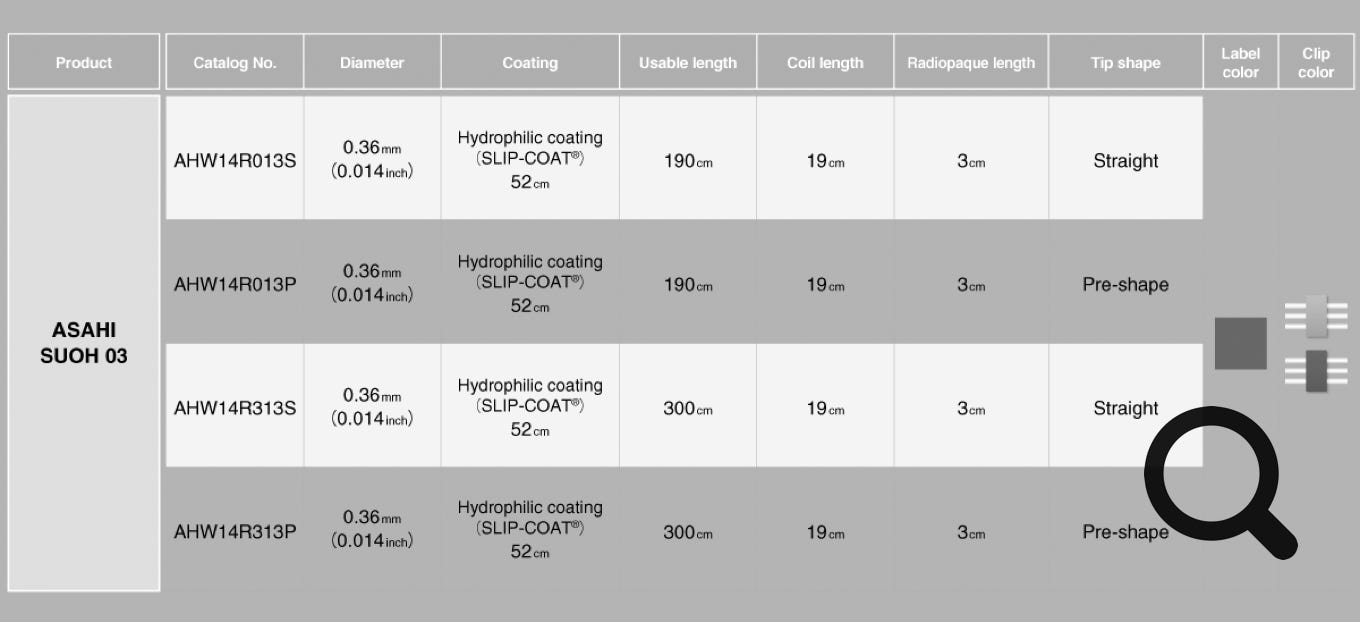 ASAHI wires are designed as One-piece core wires, transmitting the guide wire torque from one end to the other without loss and with a Joint-less spring coil, ensuring a smooth transition from platinum to stainless steel spring coil.